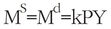 실물거래를 위해 필요한 화폐의 양, 즉 화폐의 수요는 다음과 같은 관계가 도출됨(이 이론은 화폐의 유통속도가 일정함을 전제로 함)